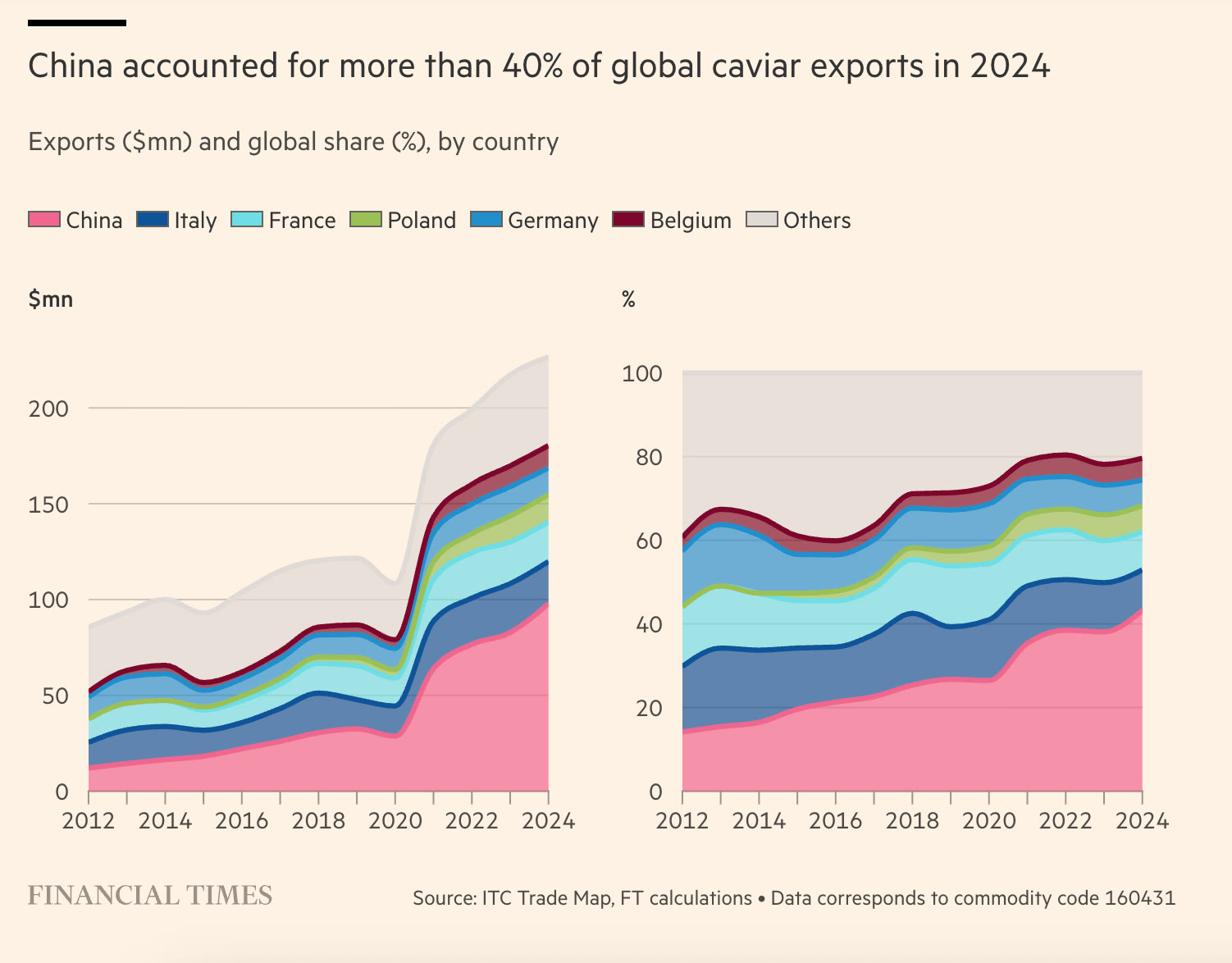 - Kaluga Queen, a caviar brand developed by experts working for China’s agriculture ministry, is today the world’s largest supplier, producing 260 tonnes of the fish eggs in 2024 — 35 per cent of the global total.